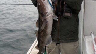 階上沖で冬のメインターゲットと言えばタラ。比較的浅い50~60mでの釣行で体への負担も少なく楽に楽しめます。使うジグは基本的に200~300g。ただ潮や風の影響で底取りが難しい場面ではそれより重めのジグを使うこともあります。200gを軽くシ...